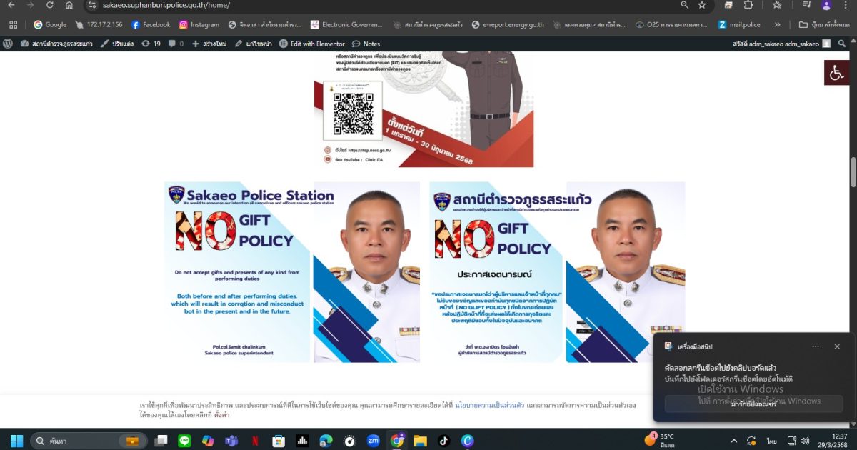ว่าที่พ.ต.อ.สามิตร ไชยอิ่คำ ผกก.สภ.สระแก้ว สั่งการให้ติดตั้งป้าย No Gift Policy ณสถานที่ต่างๆ