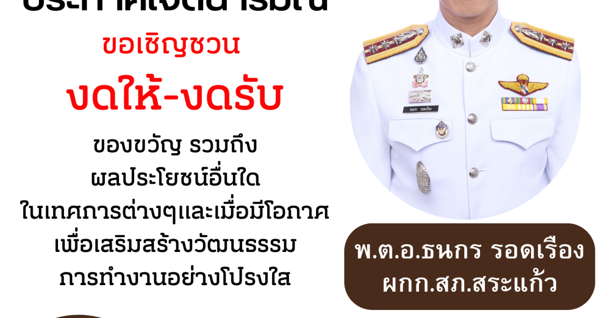 ขอเชิญชวนพี่น้องประชาชน งดให้ งดรับ ของขวัญหรือสิงตอบแทนอื่นใดเพื่อการปฏิบัติหน้า